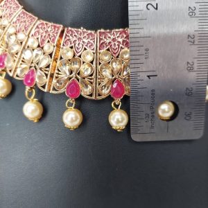 • Traditional Minakari Kundan Choker Necklace Set in Maroon Color with White Pearls JIA1190