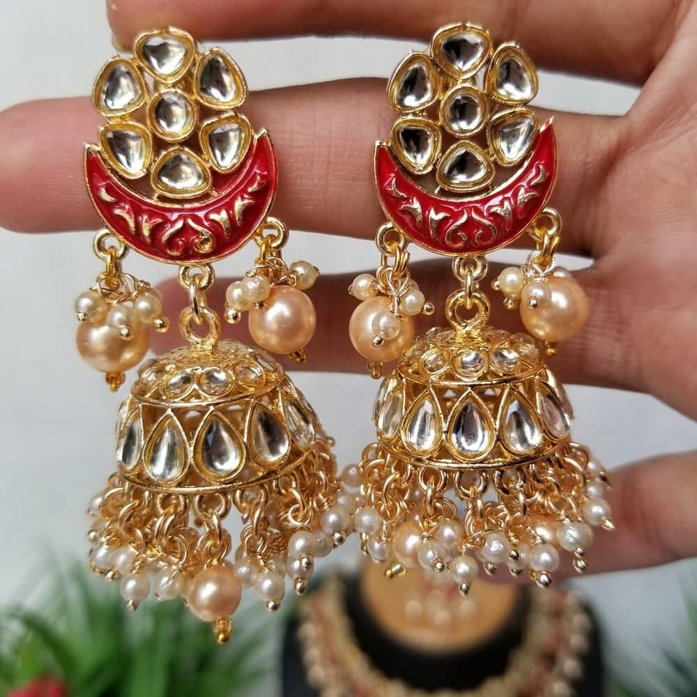 Chandbali Traditional Kundan Gold Plated Necklace Set in Ruby JIA431
