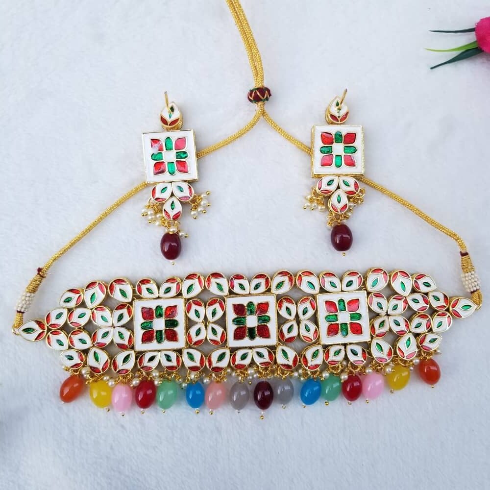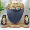 Kundan Necklace Set in Multicolor with Matching Earring and Meenakari work